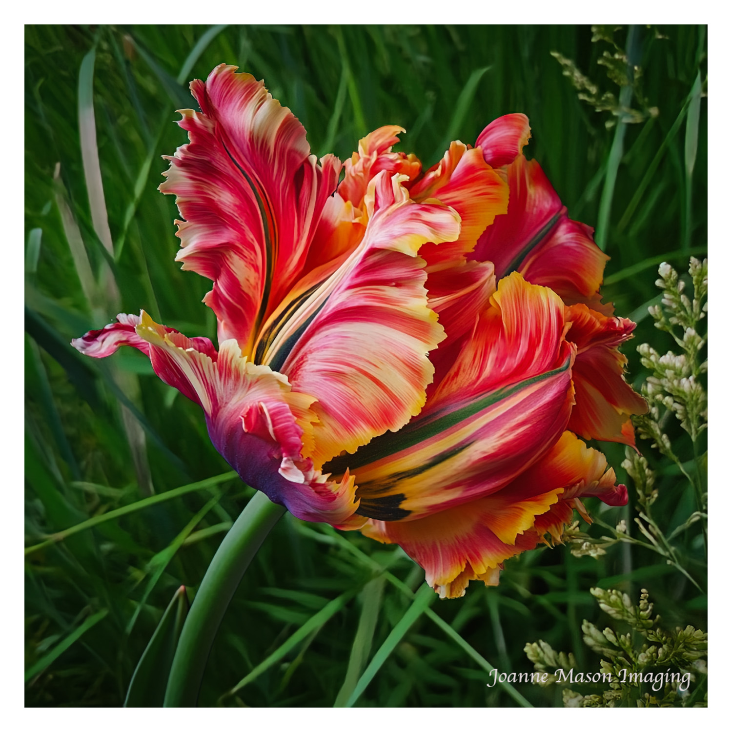 An "Extra" flower for this week – This extravagant, gloriously colored tulip. My botanical ID program tells me this is a variety called Didier's Tulip. I love these showy tulips, also referred to as "Parrot Tulips." …